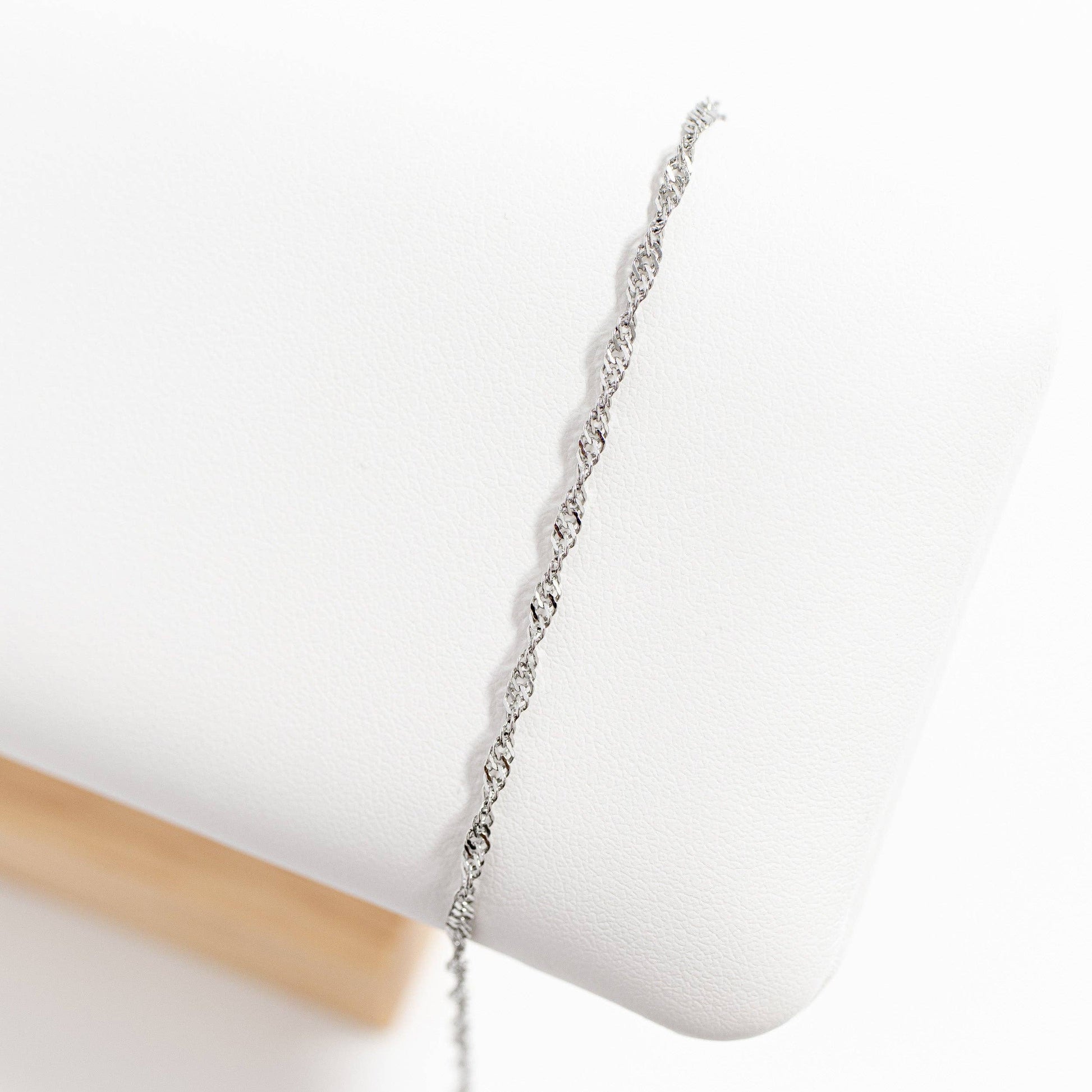 Crafted with a fluid, twisting design, the dainty Singapore Chain Bracelet catches the light from every angle. Its elegant, rope-like silhouette brings texture and movement to your wrist stack as stylish minimalist chain option. Durable, tarnish-resistant, and lightweight—this classic staple is made for everyday elegance.