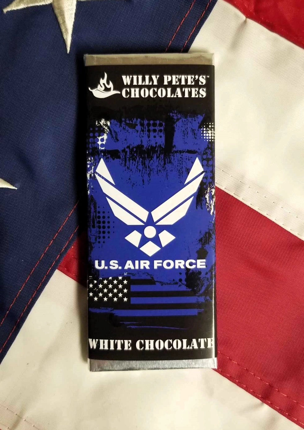 We are proud to be partnering with Veteran Strong Community Center in Bristol, CT with our new Military Bars. Proceeds from each bar sold will be going to VSCC. Their social media page can be found here. All Military Bars available: * US Army: Peanut Butter * US Air Force: White Chocolate * US Coast Guard: Milk Chocolate * US Marines: Dark Chocolate * US Navy: Milk Chocolate * US Space Force: Dark Chocolate