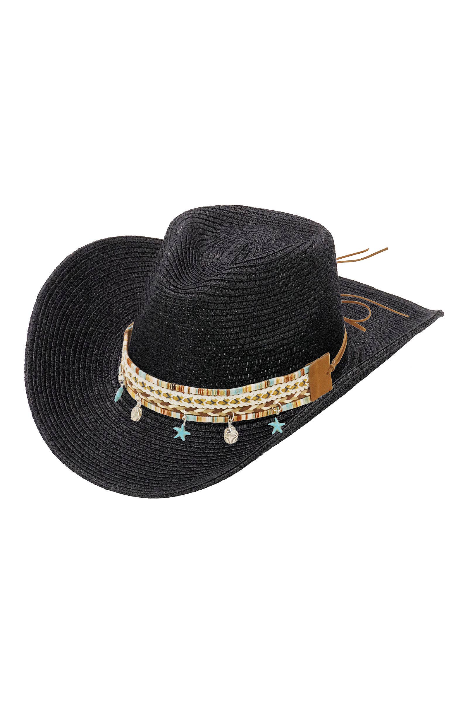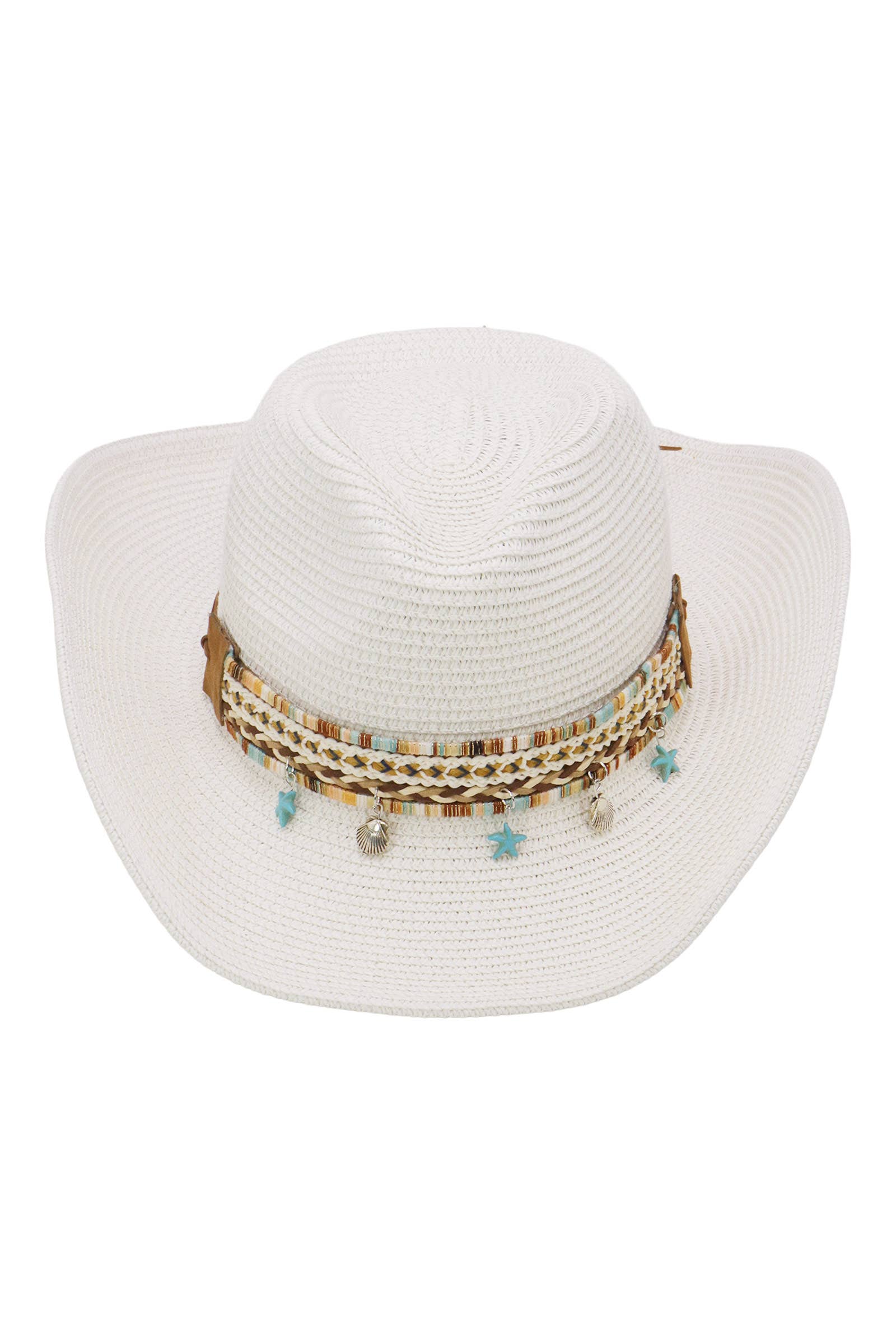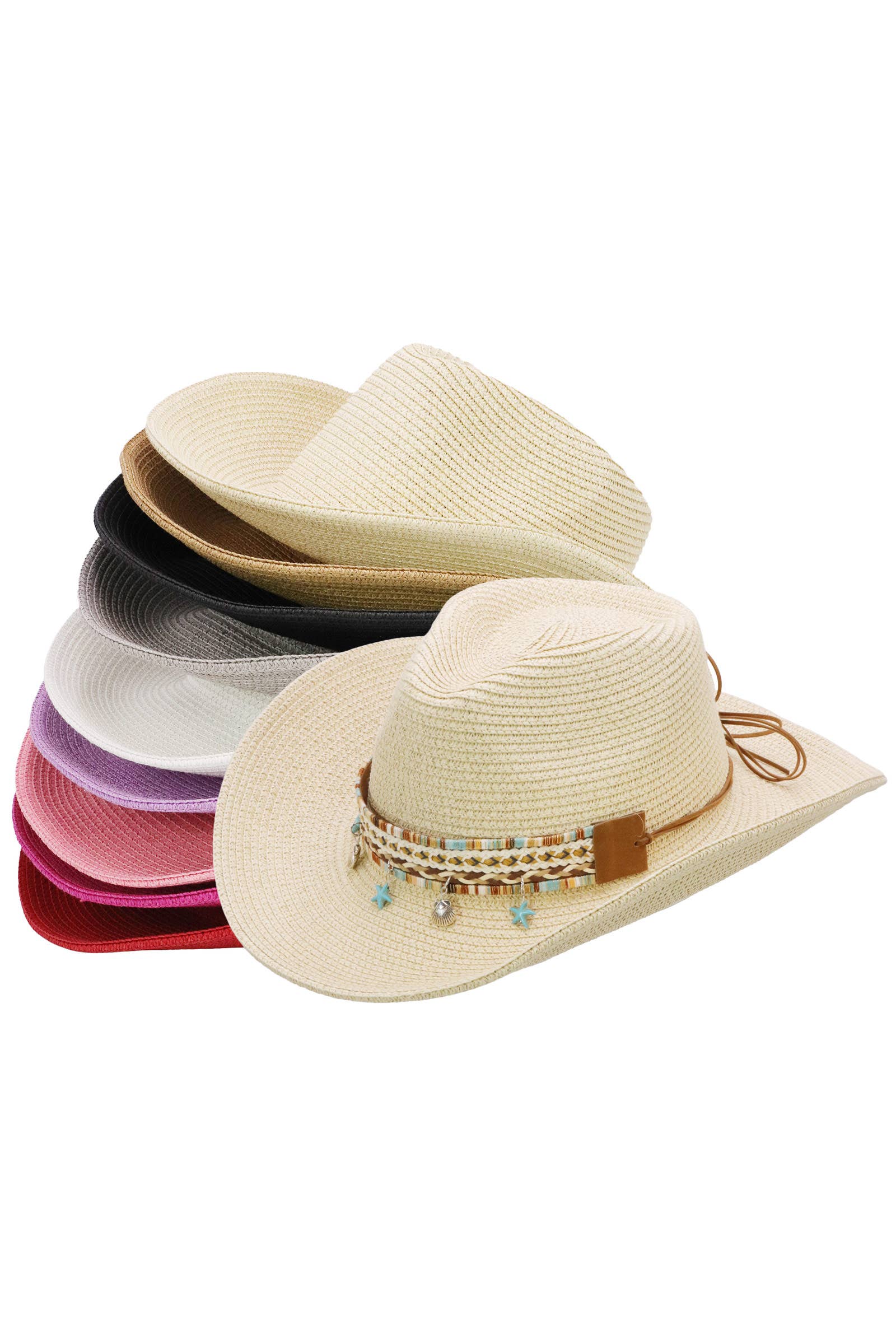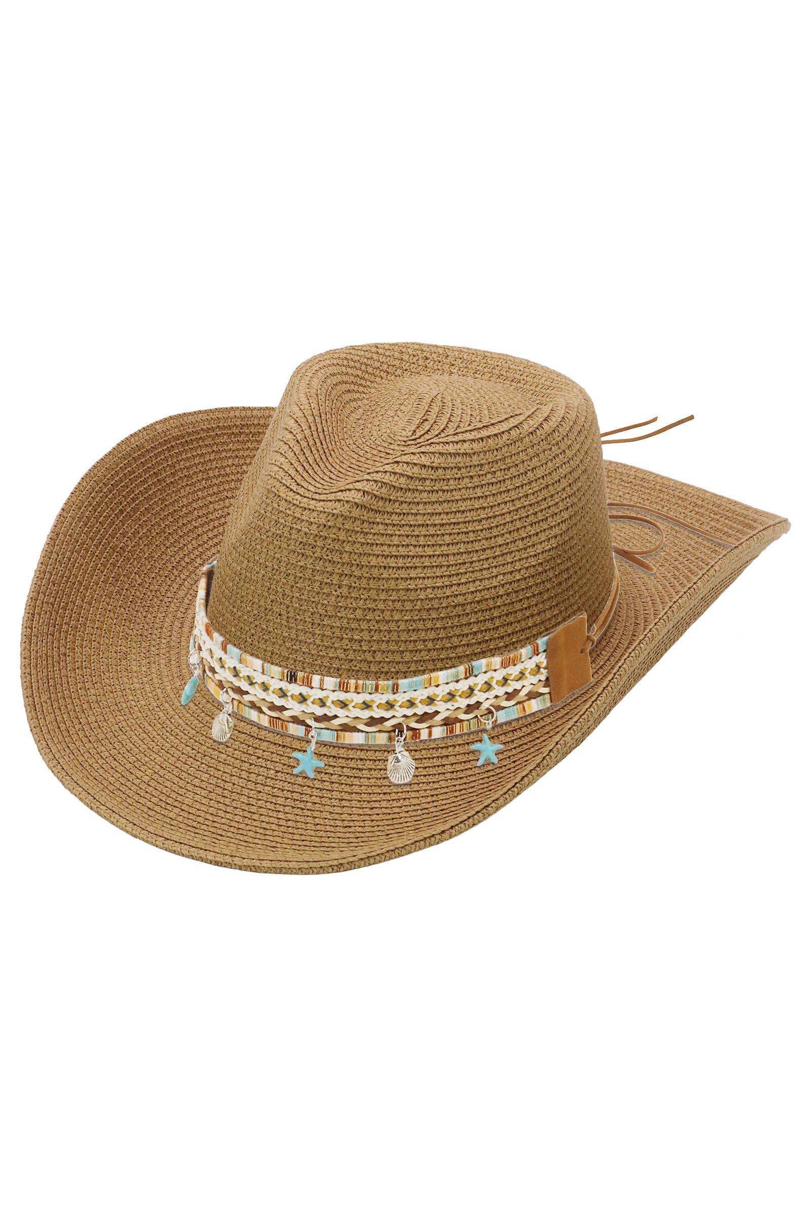 Boho Coastal Tribal Woven Band Moldable Wired Brim Tycoon Crown Soft Shell Tight Weave Paper Straw Yeehaw Cowboy Hat