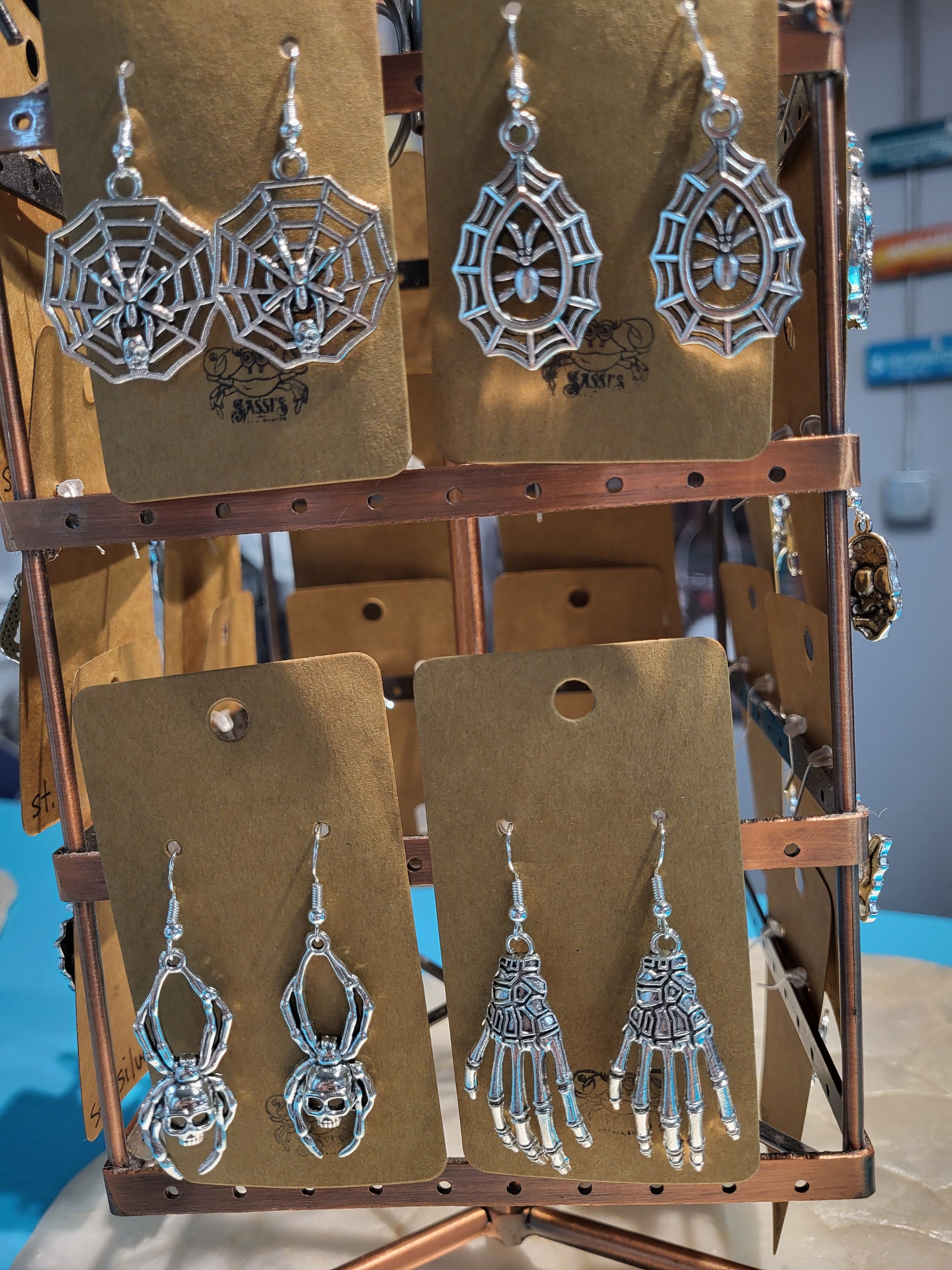 Assortment of Halloween themed charm earrings with sterling silver hooks.
