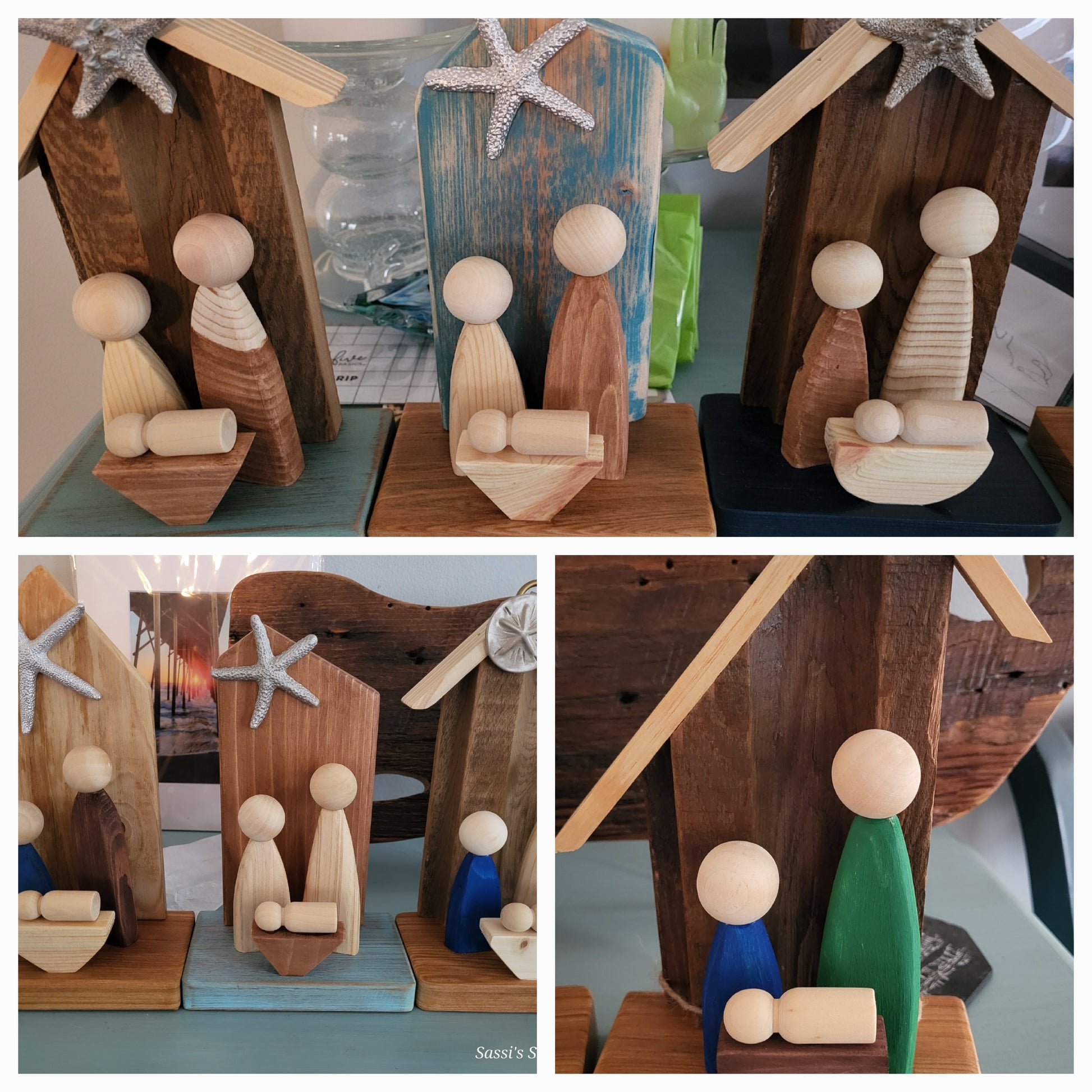 Hand made Custom Nativity set using reclaimed wood. Each is a one-of-a-kind design accented with assorted colors and or natural/ stained wood.