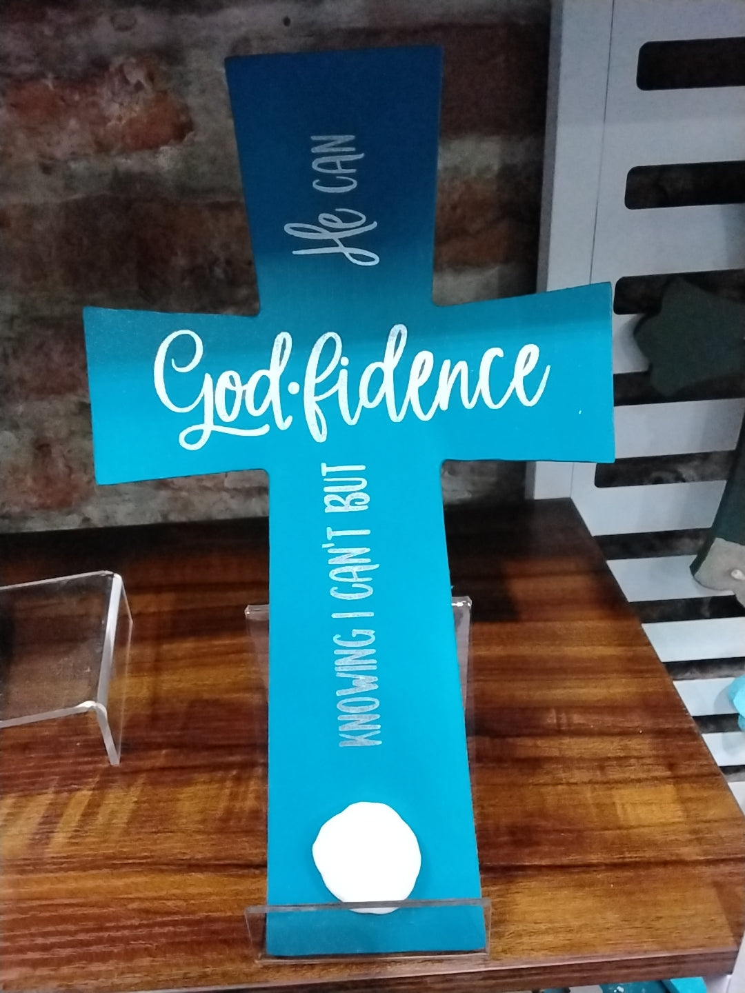 Scallop or straight edge painted wood cross w/ inspirational message and / or coastal touch.