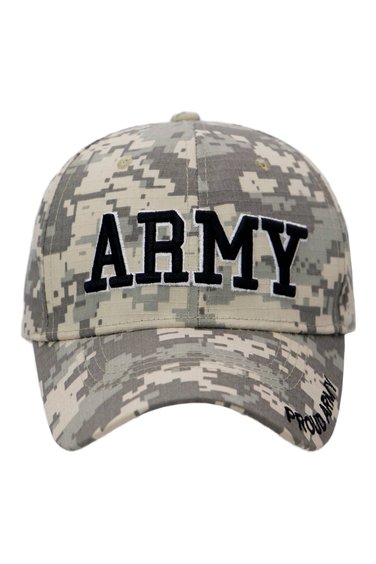 U.S. Navy, Marine, Army, Air Force Military Branch Logo Embroidered Digital Camouflage Ripstop Fabric Six Panel Curved Bill Snap Back Baseball Cap