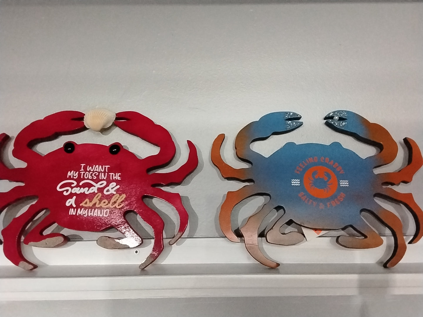 Assorted hand-cut painted wall plaques with added coastal message and/or accents